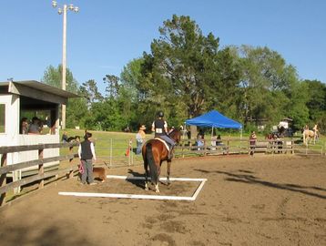 Jump a course on horseback, hop off, and jump a course with your dog. Fastest one wins! Two divisions offered, 2' jump height and 2'6 jump height (for horses). All jump heights for dogs/humans will be under 2'!